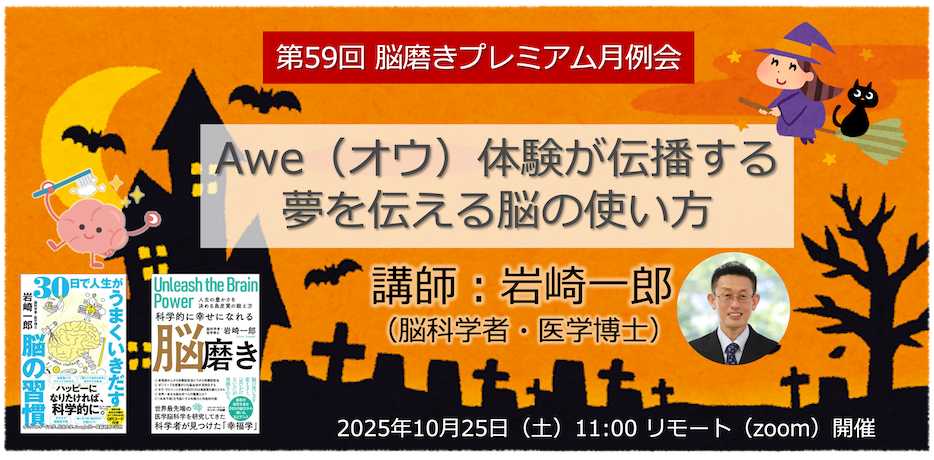 第59回 脳磨きプレミアム月例会「Awe(オウ)体験が伝播する、夢を伝える脳の使い方 」(終了しました)